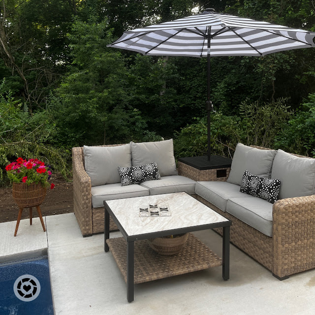We opened our pool last weekend and I am hoping to set up the patio this weekend. I am still loving our setup from last year...